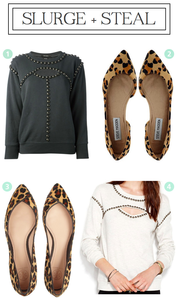 1. Isabel Marant Studded Sweatshirt | 2. Steve Madden Elusion Leopard Flats
